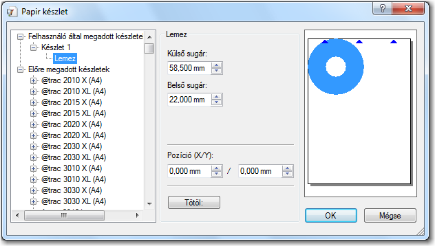 1. FÁJL menü/PAPÍR FAJTA/FELHASZNÁLÓ ÁLTAL MEGADOTT KÉSZLETEK elemre áll