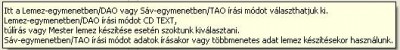Ez esetben melyik opciót válasszam? (természetesen a Nero kezdőfelületben a lemezkép cd-re írása opcióból indulok)- sáv egymenetben azaz TAO