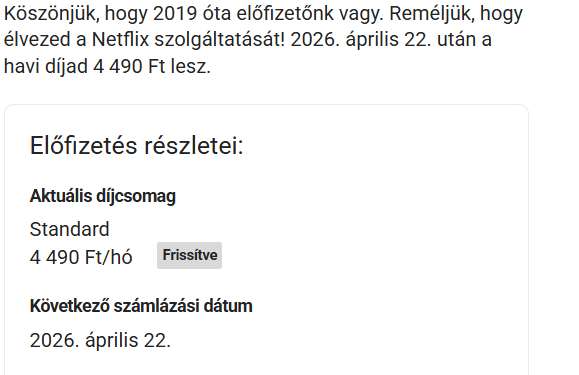 Egyébként nekem még nem szolt a Netflix hogy árat emel, de visszafogom nézni a számlákat hogy volt e változás.