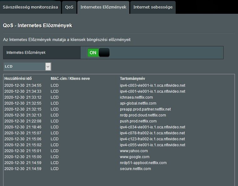 Megnéztem ASUS routeren, hogy hová csatlakozik a tévé: