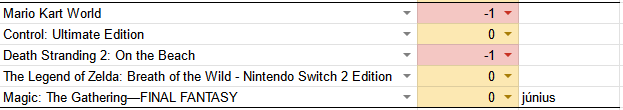 Az idei évem eddig -2 pont. Most a fekete péntek akciókat megúsztam. Mivel most jött a Metroid Prime 4 (amivel a mostani hétvégét töltöttem, de ez már december), így úgy voltam, hogy az elég lesz. Karácsonyi akciókban viszont van pár dolog tervezve, ha bekerülnek akciós listára. Majd kiderül.