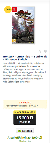 Monster Hunter Rise + Sunbreak 13680 Ft ÁK: 19-30e Ft