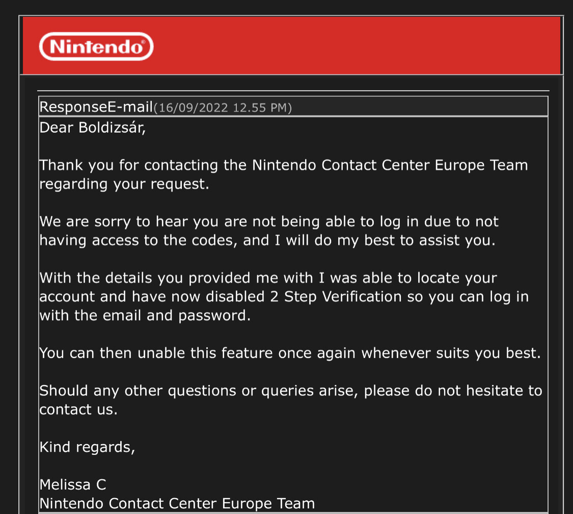Így van, a születési idő kellett, valamint a Switch sorozatszáma is, amin aktív a fiók (esetemben ez még a régi). De Redditen olvastam olyat is, hogy valakitől a regisztráció dátumát is kérték, amit az emailjei közül keresett ki, ergo az ilyesmit nem tanácsos törölni.