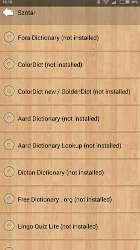 Feltettem a Cool Readert, aztán a Golden Dictet, de a reader azt írja, hogy nincs telepítve a szótár (telefonomon is kipróbáltam, ott sem jó). Próbáltam úgy is, hogy felcseréltem a telepítés sorrendjét, de nem akar működni. Tudtok segíteni?