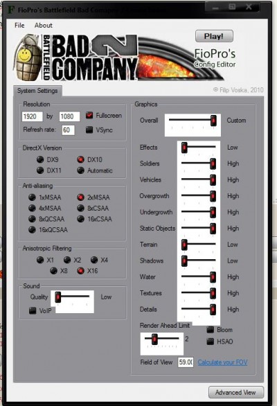 Pls nézze meg nekem v.ki akinek fentvan a BF Bad Campany 2 hogy az alábbi beállításokkal a multi futna -e 80-100 fps-el?