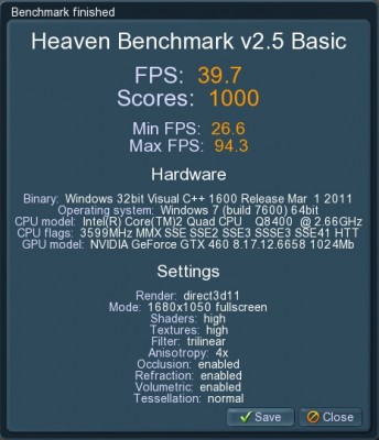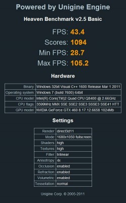 Egész szépen fut a game, DX9-ben átlag 40-50 FPS-van Max grafikai beállításokkal, 1680*1050-es felbontáson. A DX9 elenére is nagyon jól néz ki a Game, de valszeg majd a DX11 megfekteti a 460-at