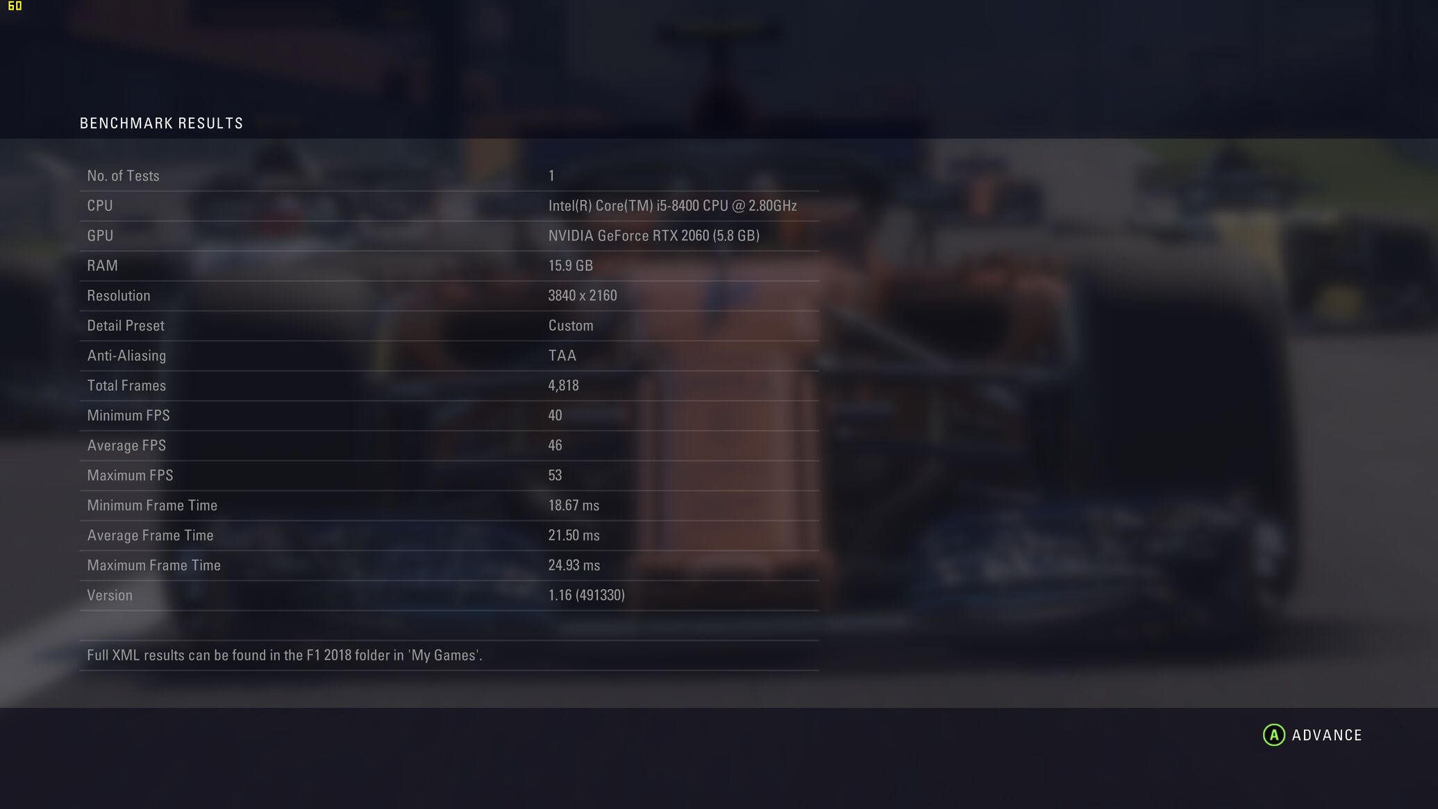 Felraktam az F1 2018at, és száguld is 1080p-ben úgy, hogy v-syncel fixen tartja a 60 fps-t (nélküle a benchmark 100+), de az 5 gigányi vram zabálása valami förtelmes. Ennél csak a Quake Champions rosszabb az 5,8al.
