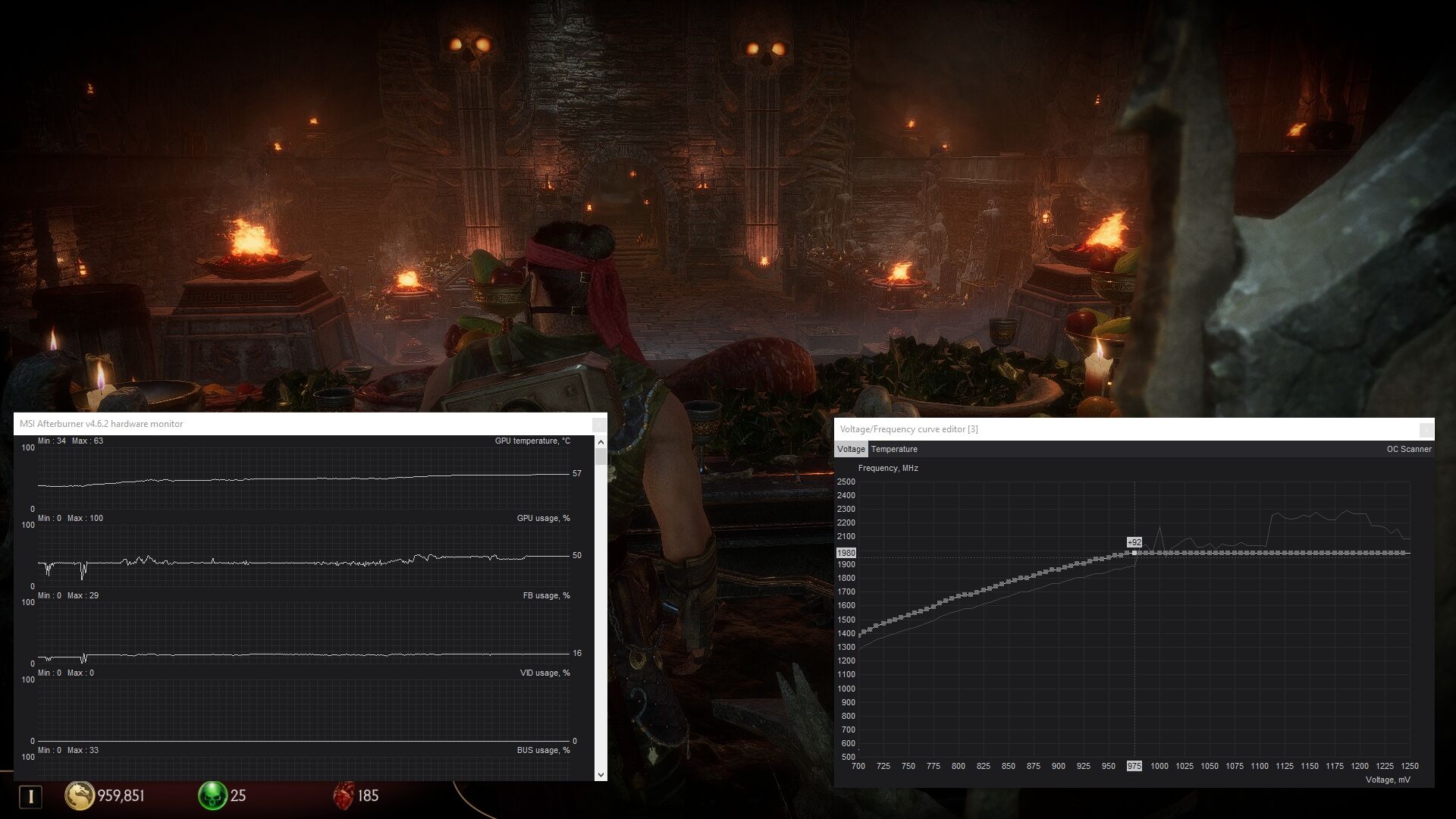 850-et próbálgattam még max 1800-al, ígéretesnek tűnik az is (hőfok/fogyasztás terén mindenképp) Azt észrevettem hogy meghálálja, ha először megemelem a chip órajelet majd utána állítom a max freq/feszt - szebb lesz a görbe, meg magasabb a min fps.