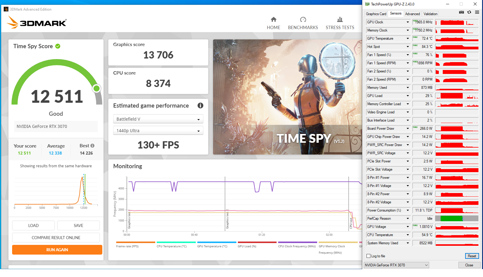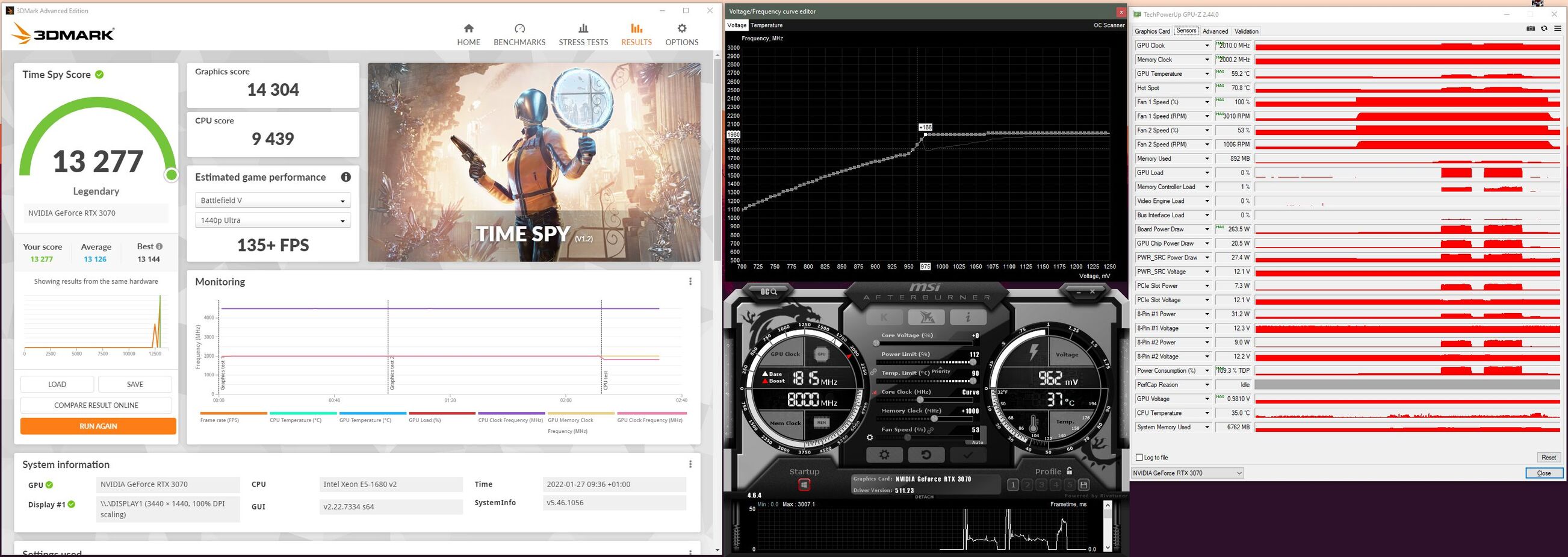 Na én ezért lapítom a görbét. Ha 4K-ban játszol, akkor Time Spy Extreme benchmarkra finomhangold, az ennél is durvább, oda méginkább vissza kéne venni a feszt és az órajelet, de tényleg nem tudom melyik játék terhelhet be annyira mint a TS Extreme