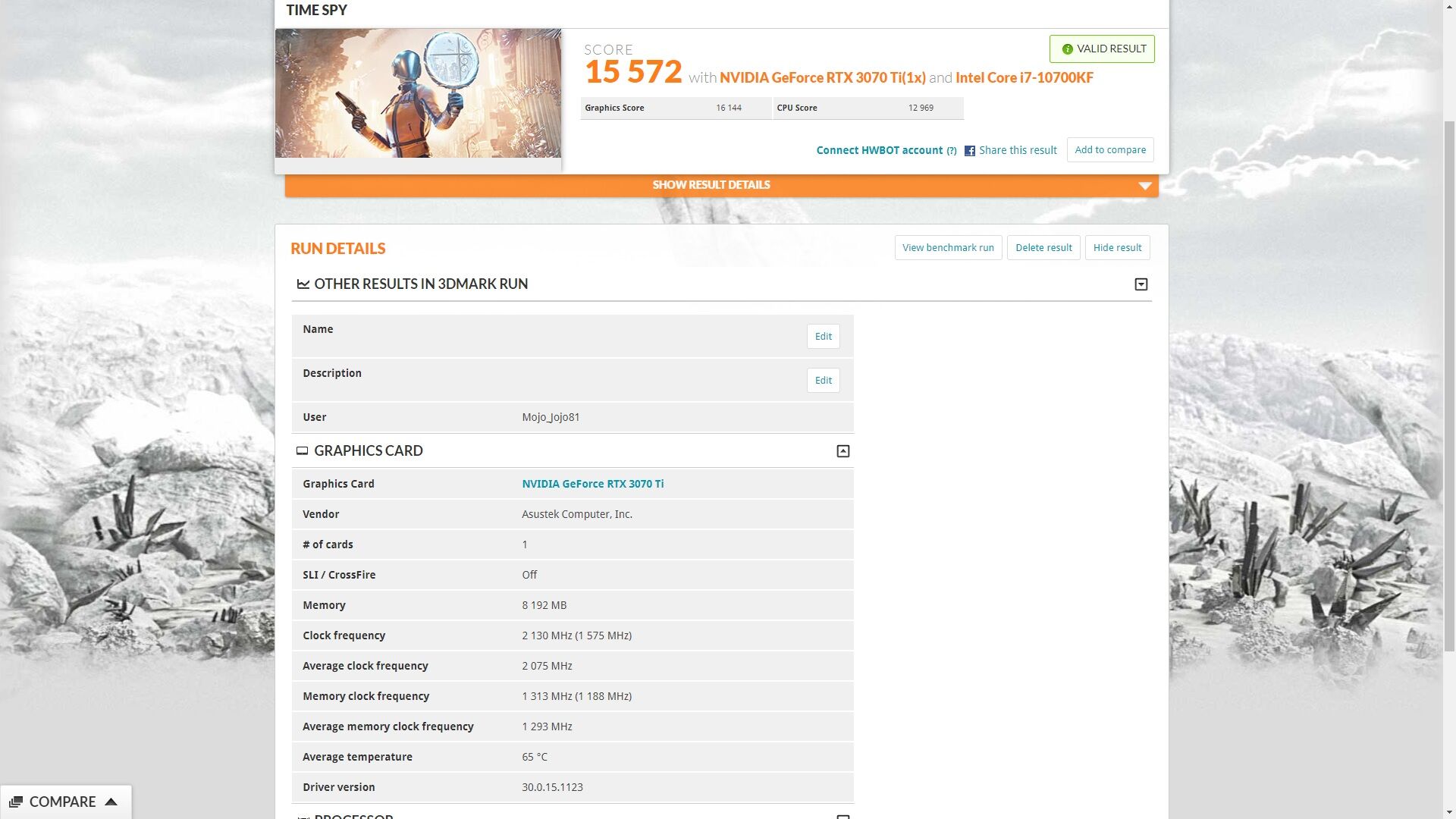 Az átlagos órajel a lényeg, hogy nálam 2073MHz-en ment, nálad 2104MHz-en, és ez meg is magyarázza a +166 pontot