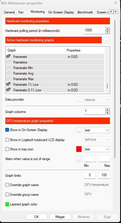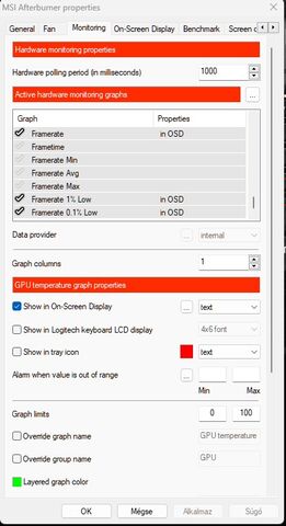 Monitorozásra beállítottam a Framerate-t, továbbá az 1 % Low, és a 0,1 % Low értékeket is, viszont a játékokban, csak a sima Framerate érték jelenik meg, a másik kettő nem.
