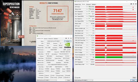 Ma picit meghúztam a bajszát manuálisan afterburnerből, ez lett a vége a Palit dual oc 3060ti-nak. Venti maxon, +98MHz gpu, 100-on már fagyott, vramhoz nem nyúltam, korábban néztem és semmit sem hozott +100MHz sem, 3DMark valamiért nem akart lefutni, ezért lett superposition csak. Proci extrem performance beállítás, minden házventi felkapcsolva, volt olyan hangzavar azt hittem felszáll a Thermaltake Overseer. Fogyasztást nem néztem, de ne a tápon spóroljunk már, egyszer kell venni egy minőségi 650-es vagy 750-es tápot és ha nem épp a csúcskártyák közül választunk szerintem örökélet + 1 hónap garancia, hogy elviszi. Nálam Corsair RM650x szolgál már több mint 5 éve gond nélkül.