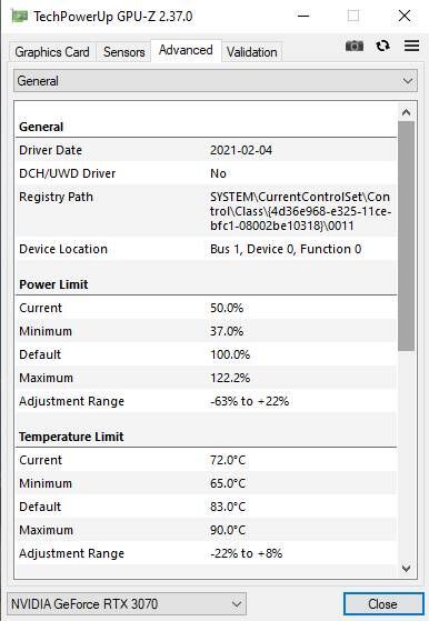 Ha nem tolom ki a power limitet, akkor is belemegy a ~325W-ba. Amivel nem is lenne gond, mert a Gigabyte Master is 300-ig ment, de halk ventijei vannak, még 100%-on sem olyan hangos, mint ez 50-60%-on. Nagyjából ott megállt a GPU 60°C-on.