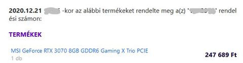 Vettem én is egy 3060ti-t, postapontra kértem, már nálam a kártya, reggel már átvehető volt a postán