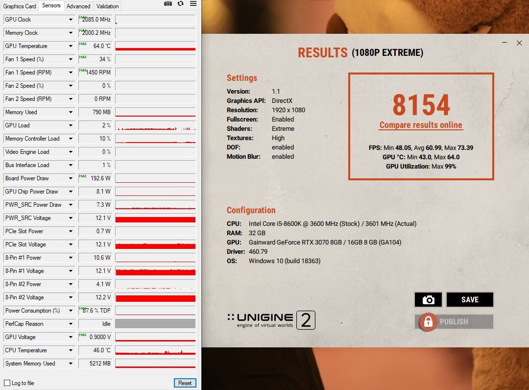 Toltam egy kis PUBG-t, full hd beállítás minden max, monitorom 180Hz, szinte fix 180FPS mindenhol megvan bármit csinálok. Annak ellenére hogy nincs kihasználva teljesen a kártya. Néhány órát töltöttem összesen a feszültség görbe állítással, lehet hogy megvan a legjobb beállítás...