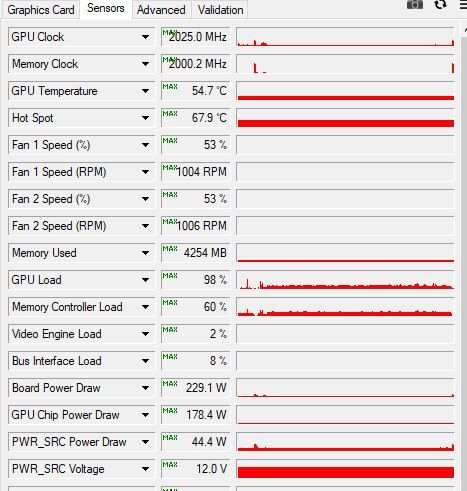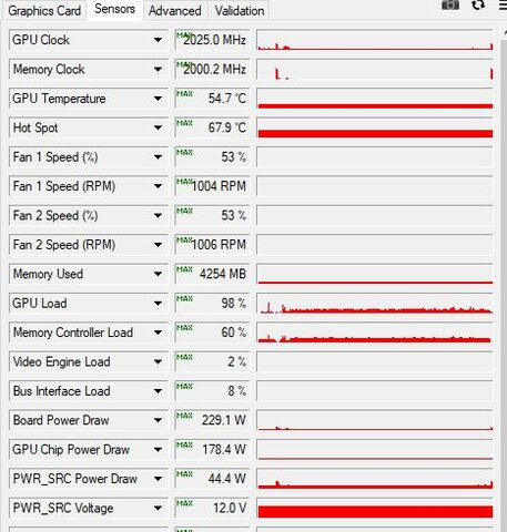 most fix 0.906V és 1860Mhz és nálam is 60-70% a kártya használata. Érdekes mód nincs drop 1860Mhz-rol hanem full stabil. Itt most a hotspot kerek 90fok, a vga pedig 75, ami még elfogadható. Ezen a beállításokon több az FPS 10-15-el ahogy észre vettem, mintha automatán hagyom. Hiába kevesebb a kihasználtság.