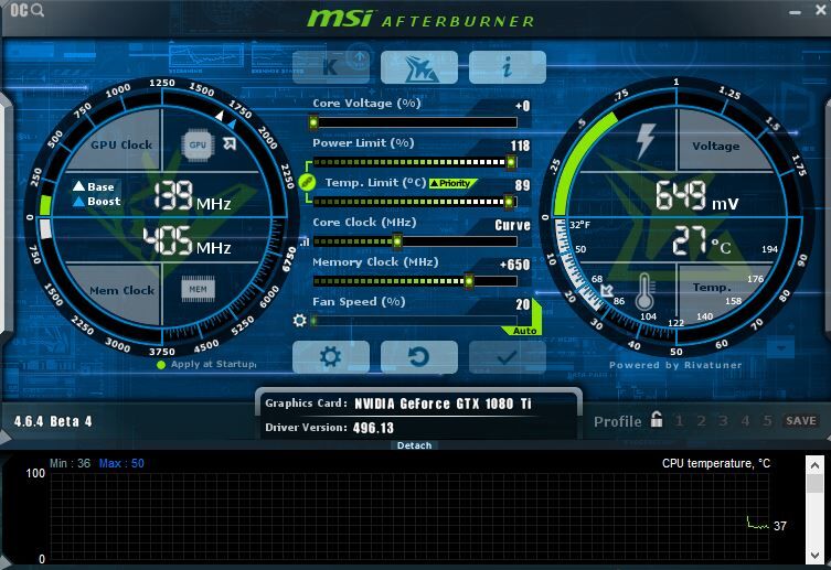 Ilyenkor játékban afterburner és vissza állítom 1800MHz-t.