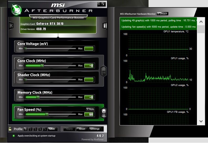 (i5 8500 + 2x8gb 2666mhz +500gb m.2 ssd + 2tb ssd + 600w fsp hyper modular )Msi afterburnet-rel a Fan speed-et 75% állitottam