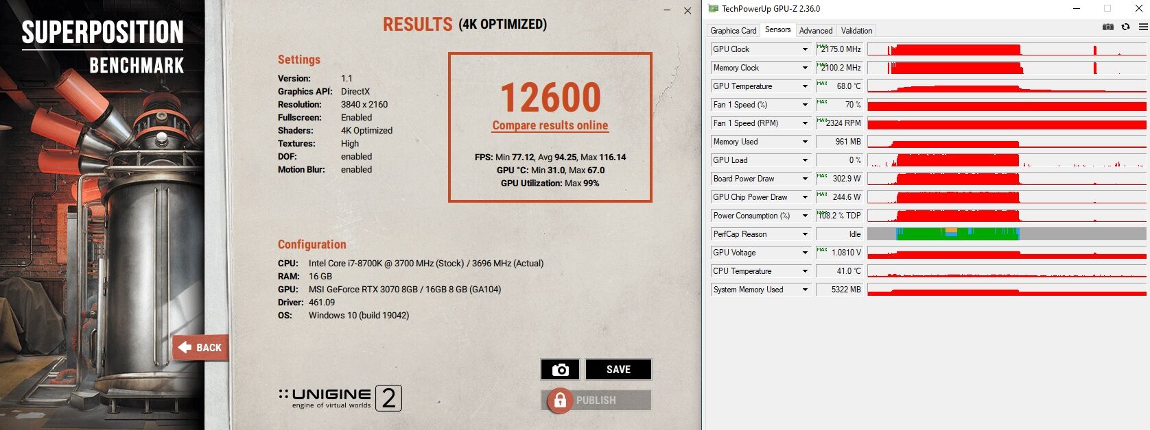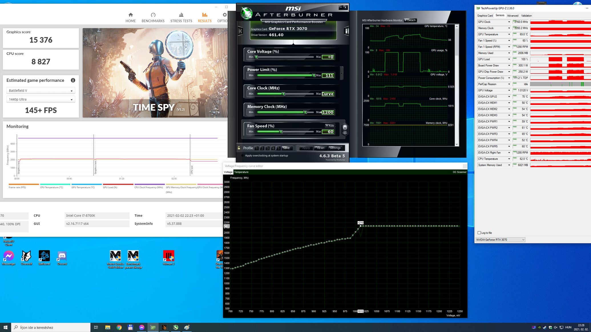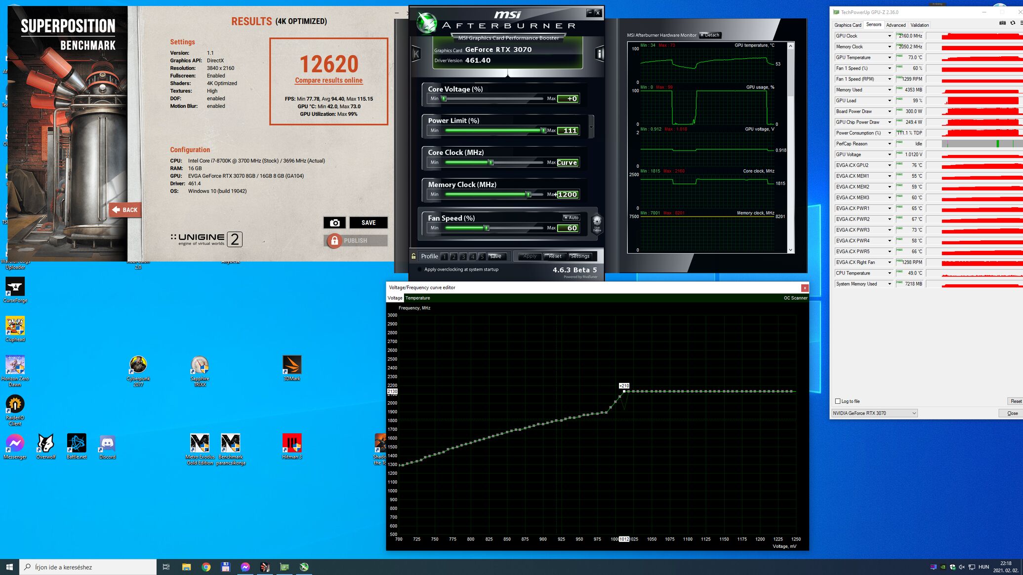 Strix 3070-esem volt 1db, 295W-ot evett 1081mV-on is és 2085MHz-et tudott maximum.