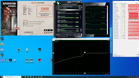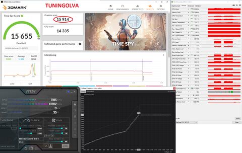 A memórián viszont húzni kell mert a pontszámok nem javulnak, tehát 2100MHz környékére már +800-1200MHz memória kell (+500on hagyva hiába nőtt a core clock, nem javultak a pontszámok), csak hát amint emelek a memórián, hamarabb jön az a bizonyos powerlimit