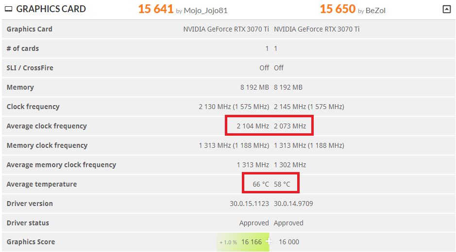 És akkor még az sem mindegy, milyen memória van a 3060 Ti-on, egyik jobban, másik kevésbé húzható