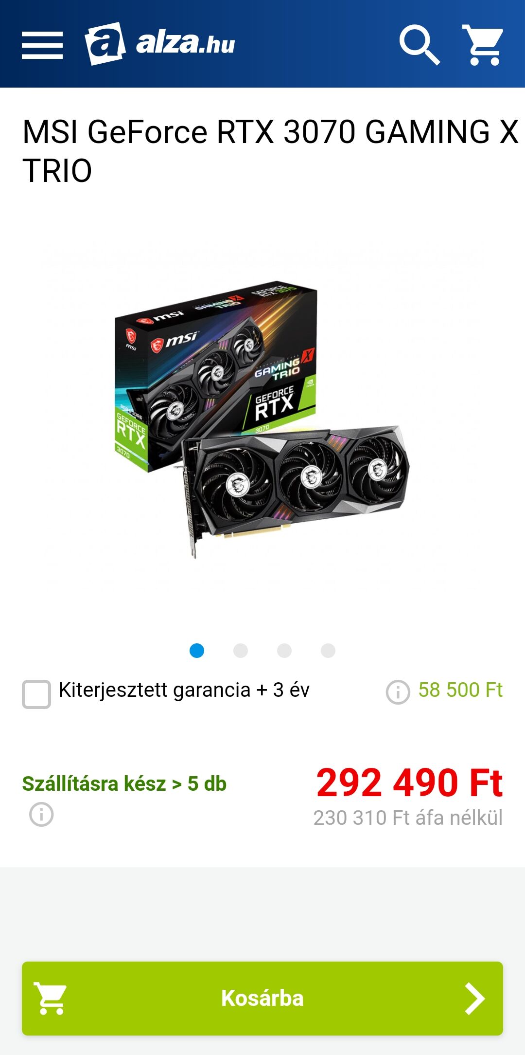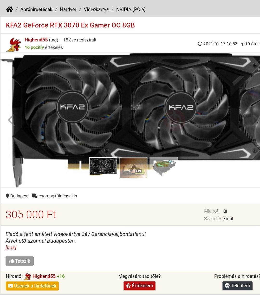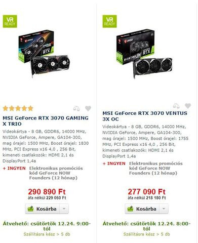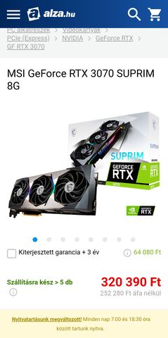 Na ennyit az Aqua webáruházról. Rájöttek, hogy rossz árat írtak a MSI 3070 gaming x trio-ra, mert az Alza is drágábban adta ezt a kártyát, és az Aqua-nál minimum egy százassal drágábban kinálják a termékeiket ez utóbbinál.
