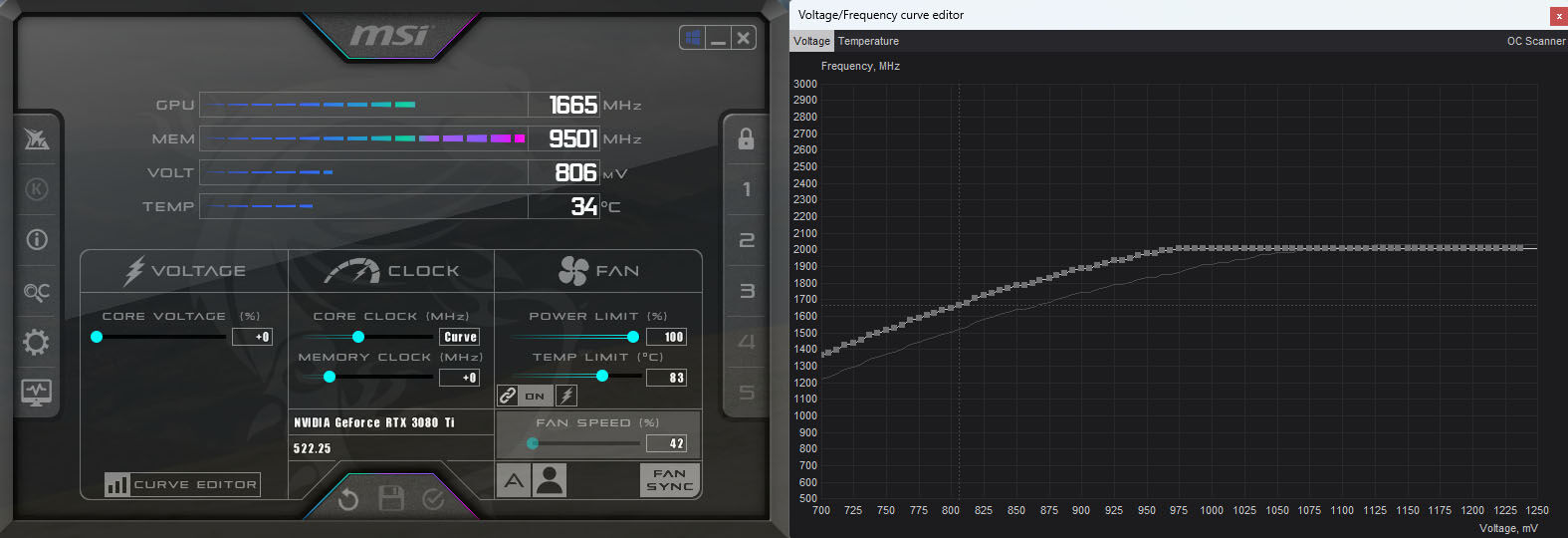 Rászántam magam és egy picit stabilizáltam a vga körül. Én laptoppal nyomom, csak azért nyúltam hozzá mert pár tesztben pl szerintem a legjobb....Chernobylite játék benchmark-ban is itt-ott jól beröccent a futtatás alap görbével ezért hozzányúltam. Most így simán fut minden, alacsonyabb alapfesszel (alacsonyabbra ugrott magától a görbe nyomán amit megadtam), gyorsabban, hűvösebben. Bányászkártya volt ez a PNY 3080 ti vga....basszus sehol senki nem ír erről.
