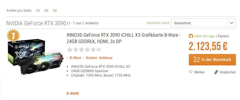 Kilencszáz euro alatt az Inno3D RTX 3080-asa a notebooksbilliger-en, alakul...