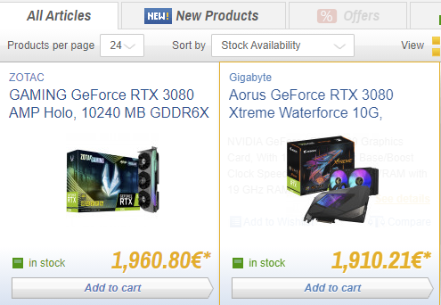 Vagy éppenséggel Németországban árukapcsolással veheted meg a kártyákat. (Notebooksbilliger) Általában alaplappal, vagy RAM-mal párosítva dobálják utánad, de még így sem nyerő az áruk. Legalábbis én nem tudok 1700 eurós kártyaárat jónak nevezni... (Giga 3080TI OC + B550 Elite mobo)