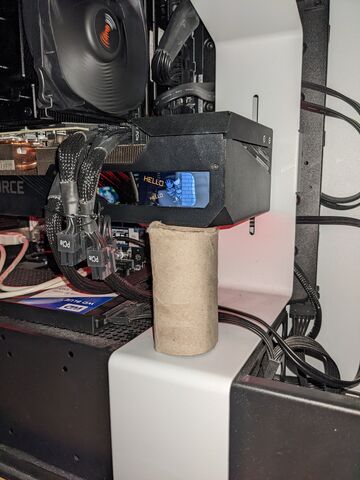 Az én vga-m elég nehéz, most gondolkodom egy műanyag csövön ez eddigi (ideiglenes) papírhenger helyett. Olyan 4-5 milimétert lógna a vége nélküle. Irgalmatlan léghűtés van rajta, és nem tartja túl sok minden a hátlapi csavarokon túl.