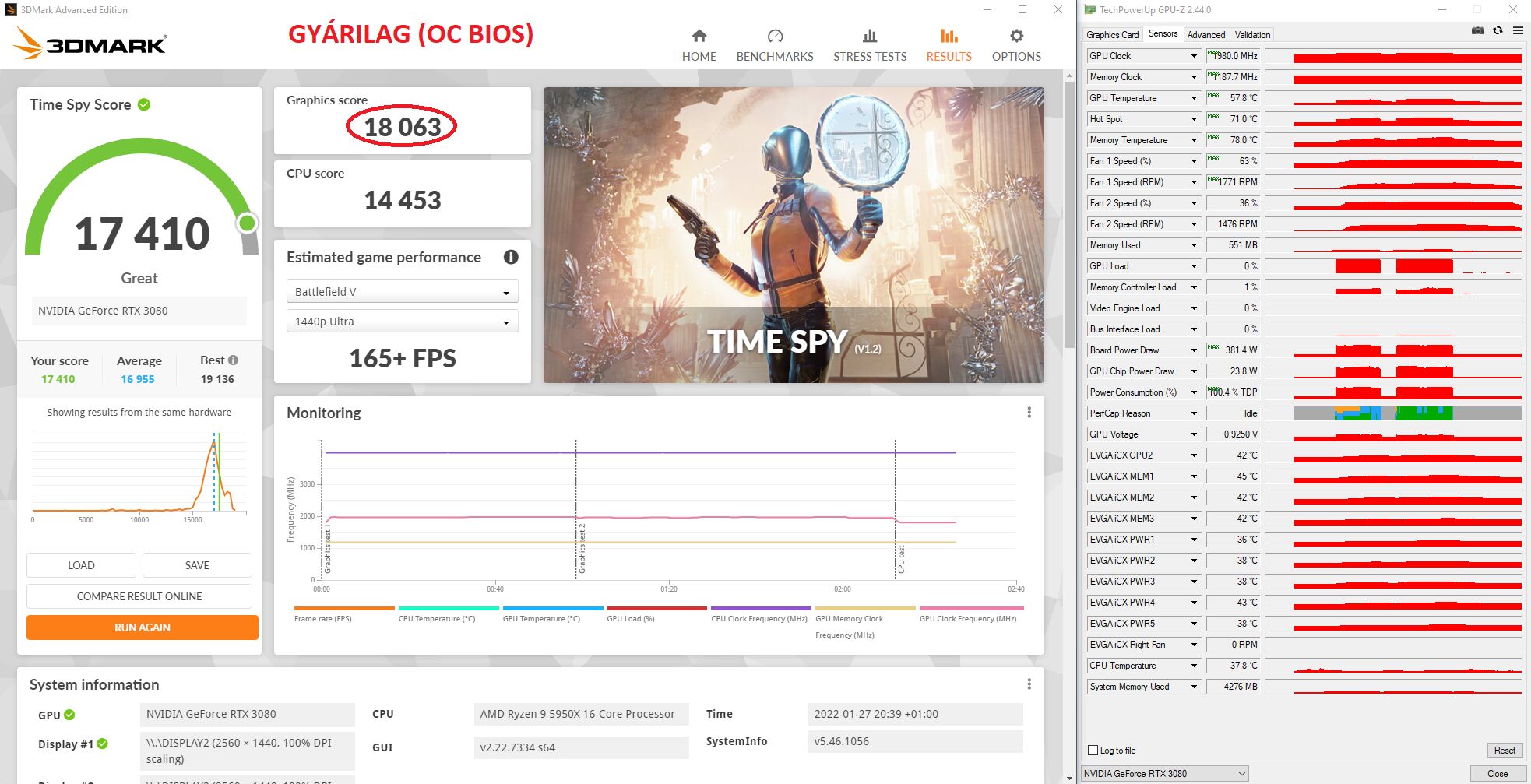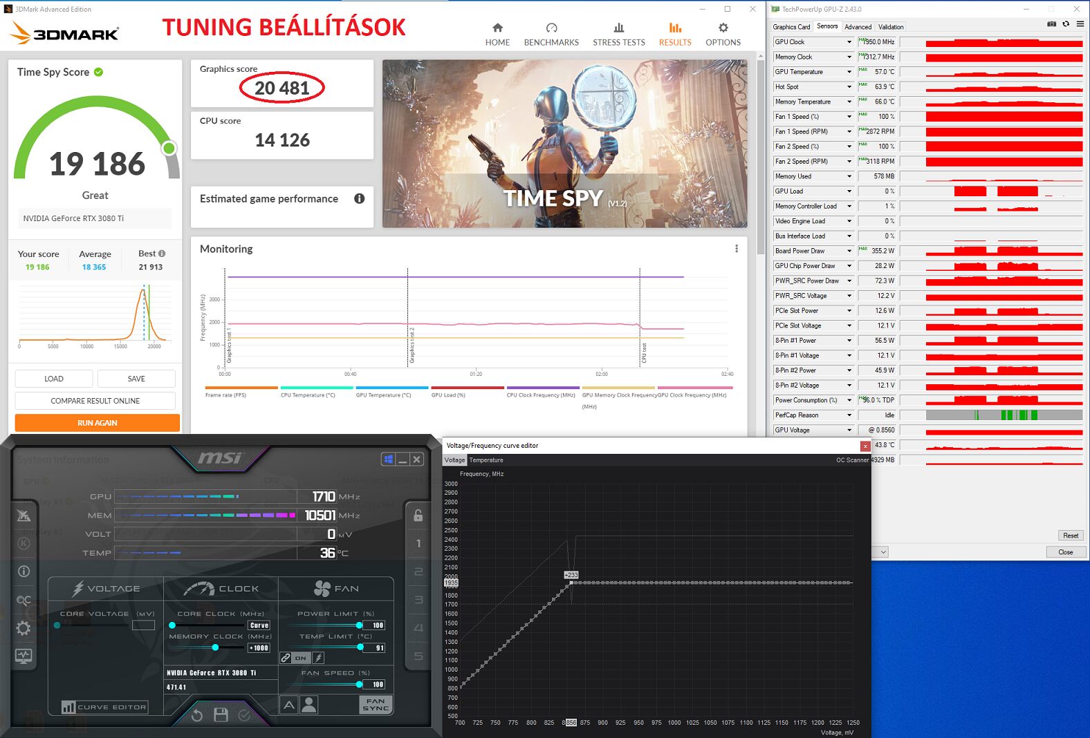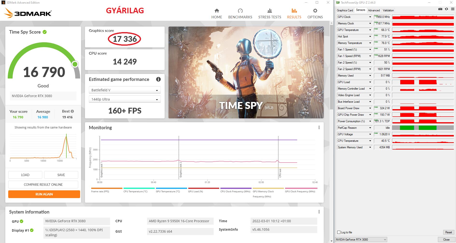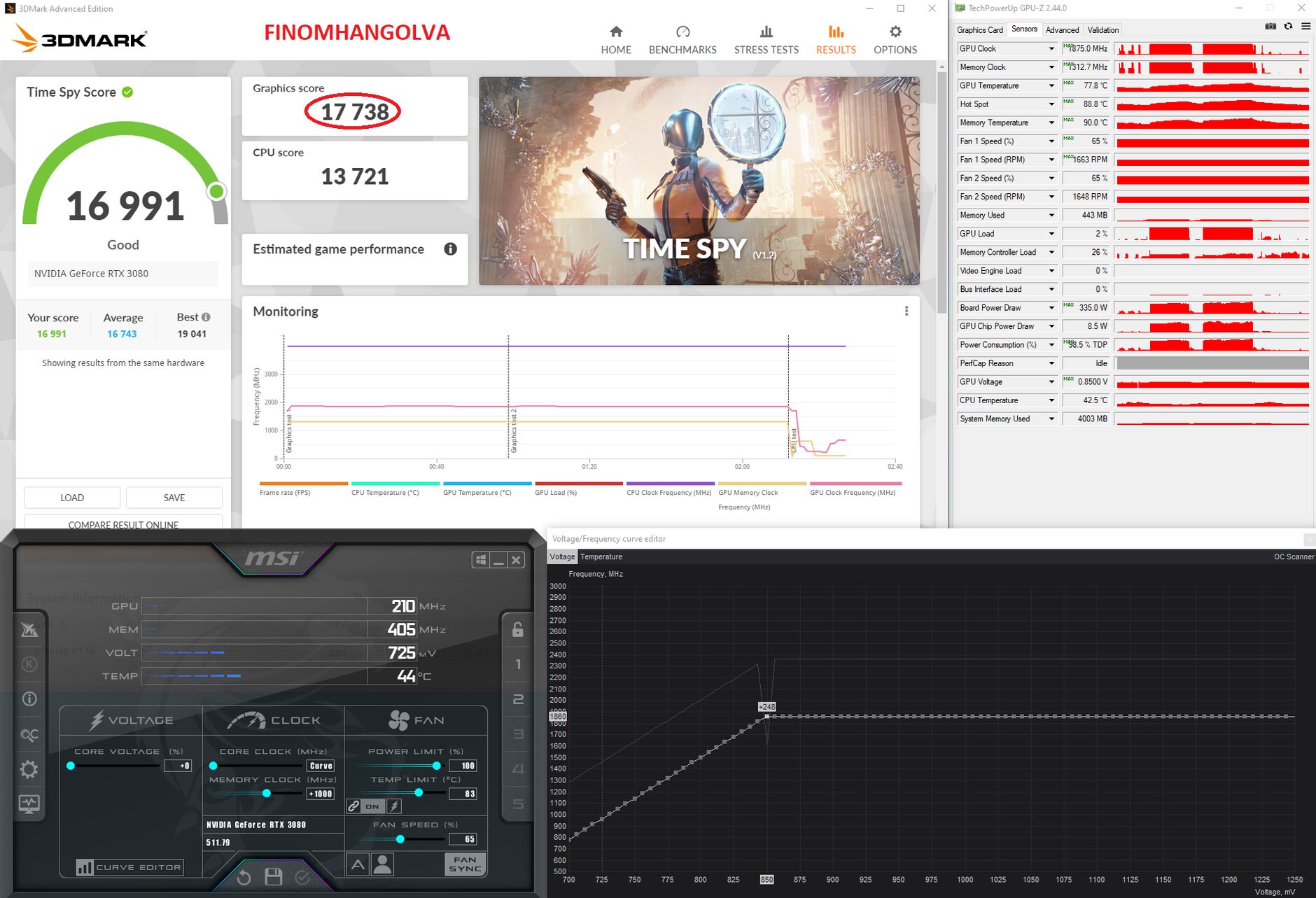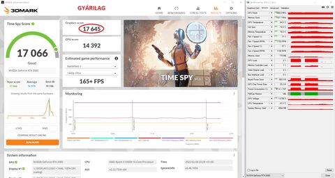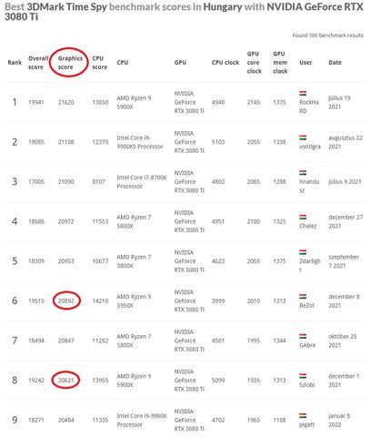 350W-ból legalább 15.500 Graphics Score-t várnék el egy sima 3070-estől, de inkább 15.800 környékét (world top 100. 15.675 GS).