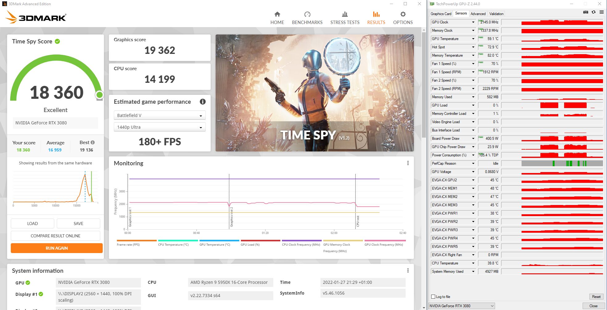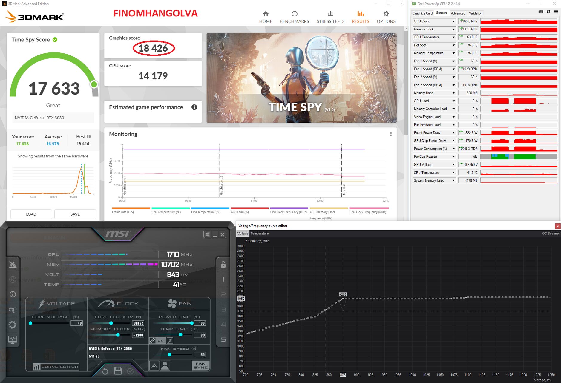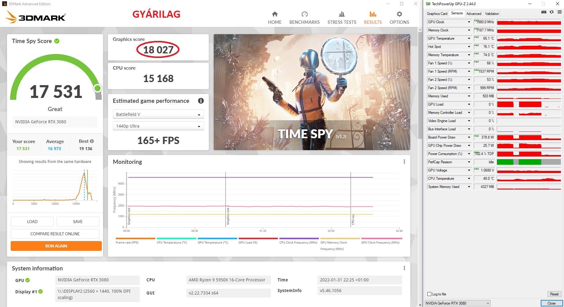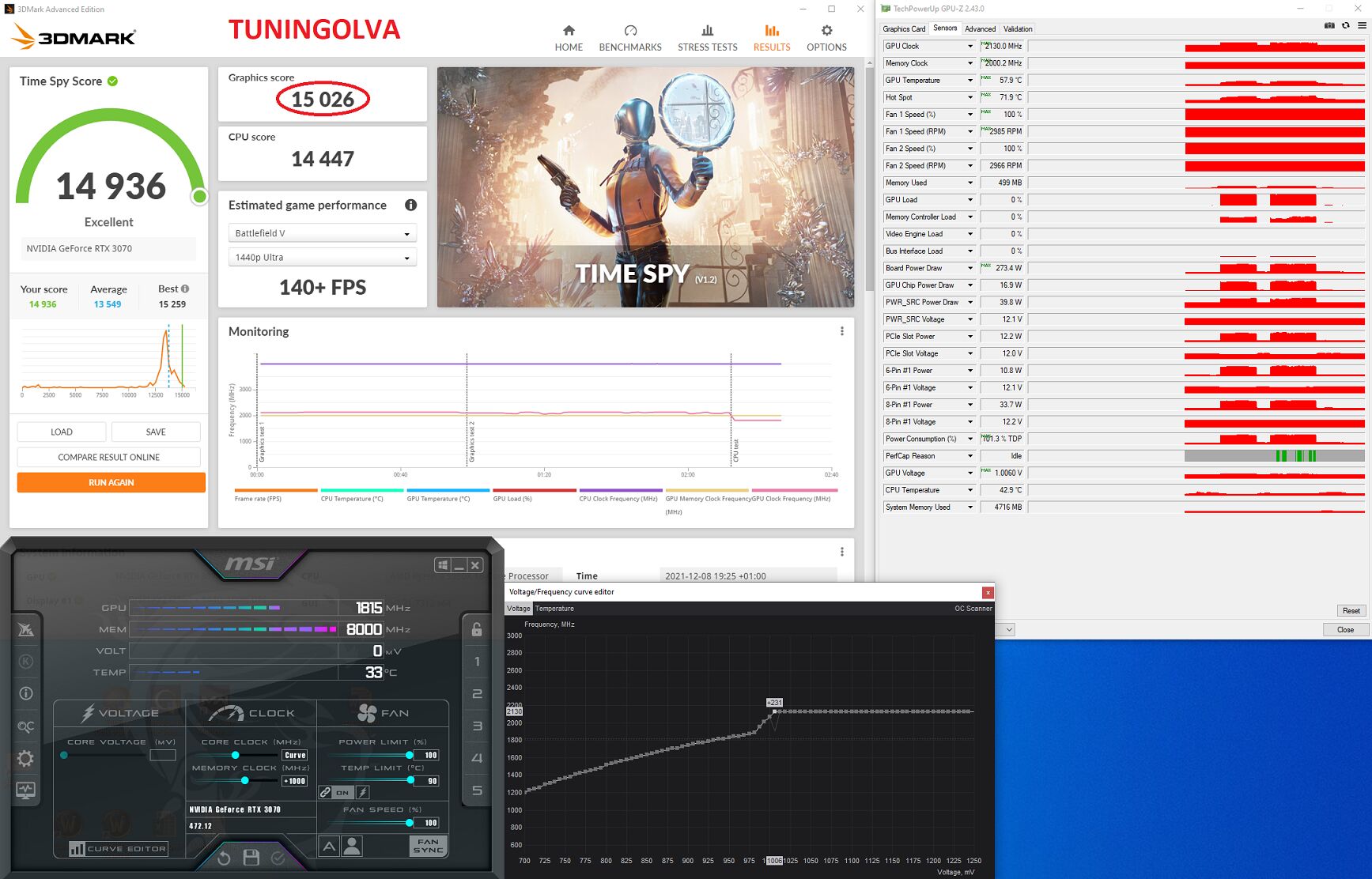 350W-ból legalább 15.500 Graphics Score-t várnék el egy sima 3070-estől, de inkább 15.800 környékét (world top 100. 15.675 GS).