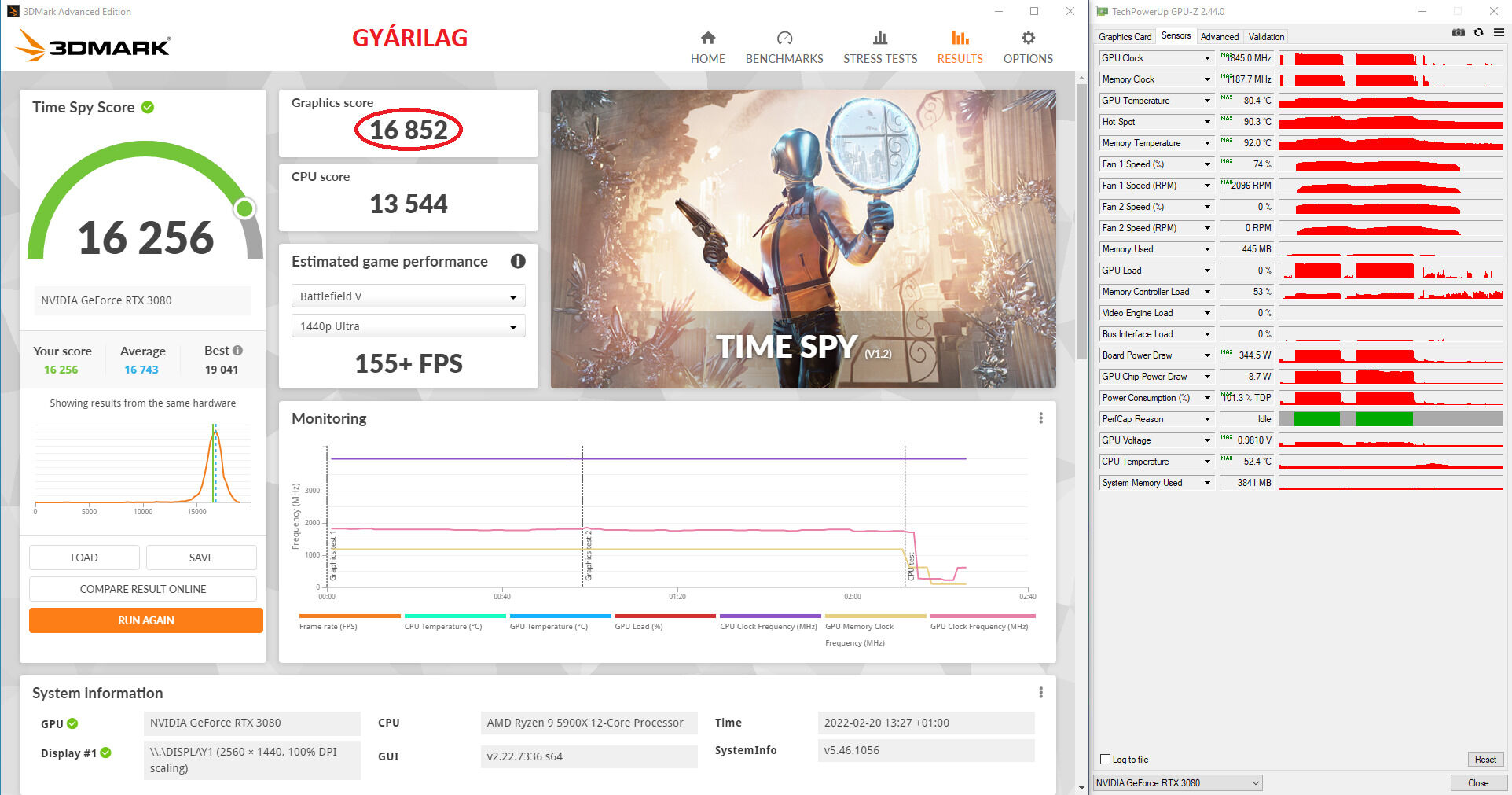 Gigabyte Vision OC RTX 3080 méréseim, utókornak jól jöhet: