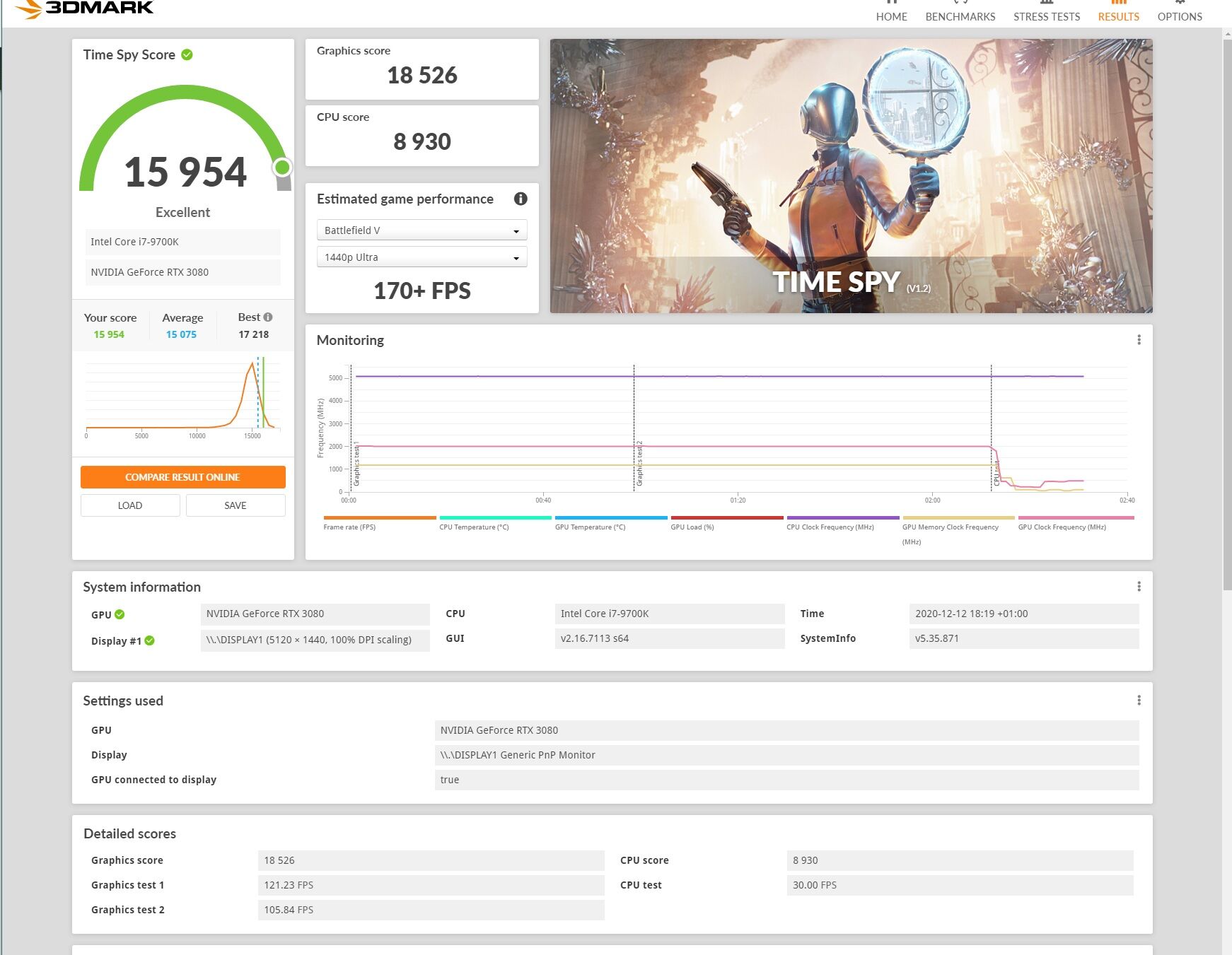 Time spy esetében nem látszik a hőfok, 62-63 fokra ment fel. Itt már visszavette 2010 MHZ-re.
