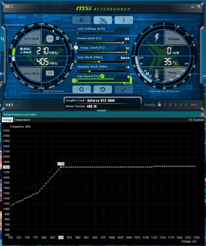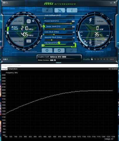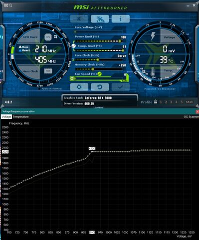 Nálam most 0,95 V-al 1875 MHz-ig boostol tesztben (time Spy) és egy játékban ugyanúgy. Hőfok 5 fokkal kellemesebb mint default, így 62-63 fok.(saját ventiprofil, de nem full!)