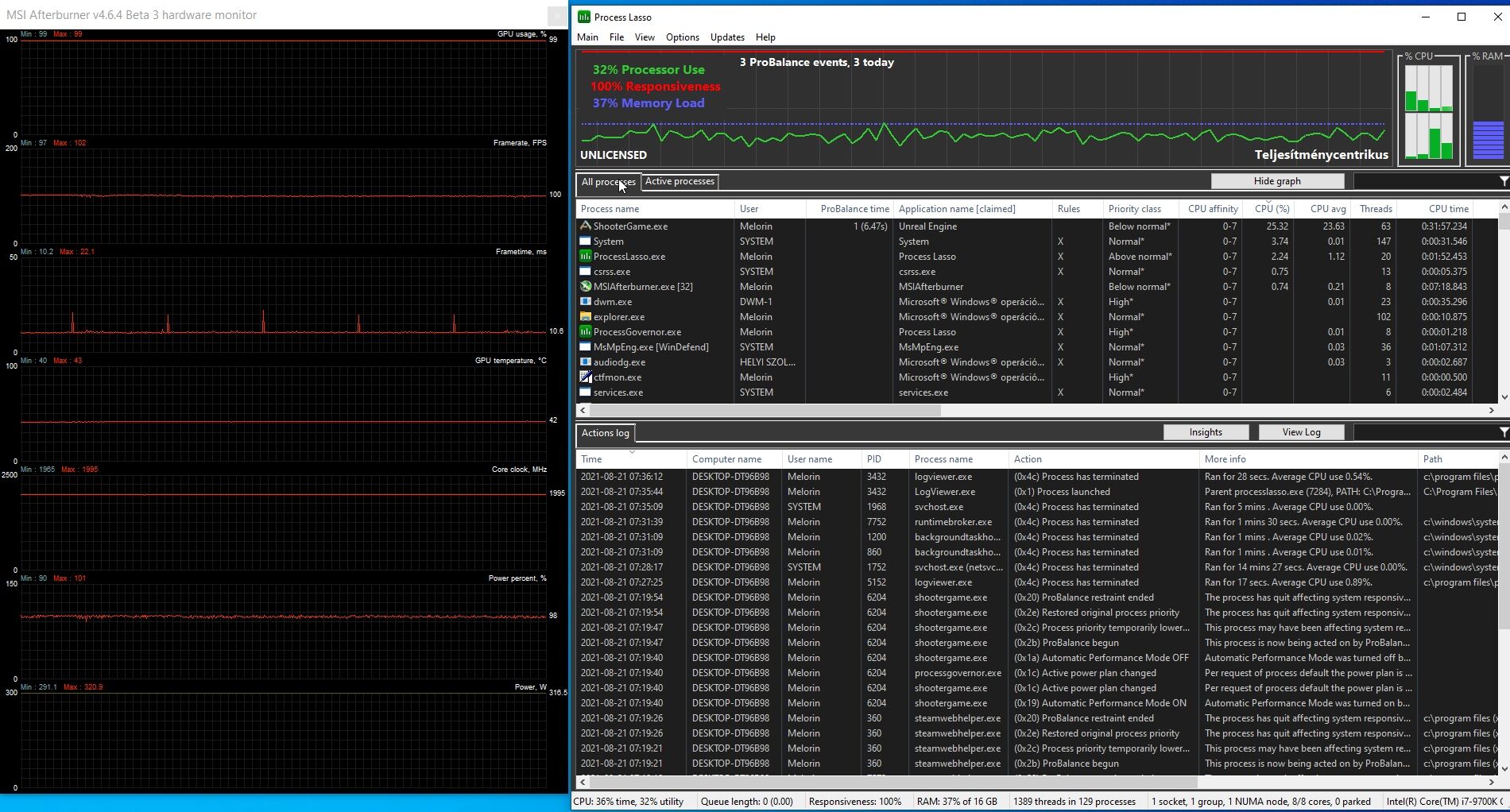 Nálam nincs telepítve sem az experience, MSI AB-ben sincs aktiválva a felvétel.