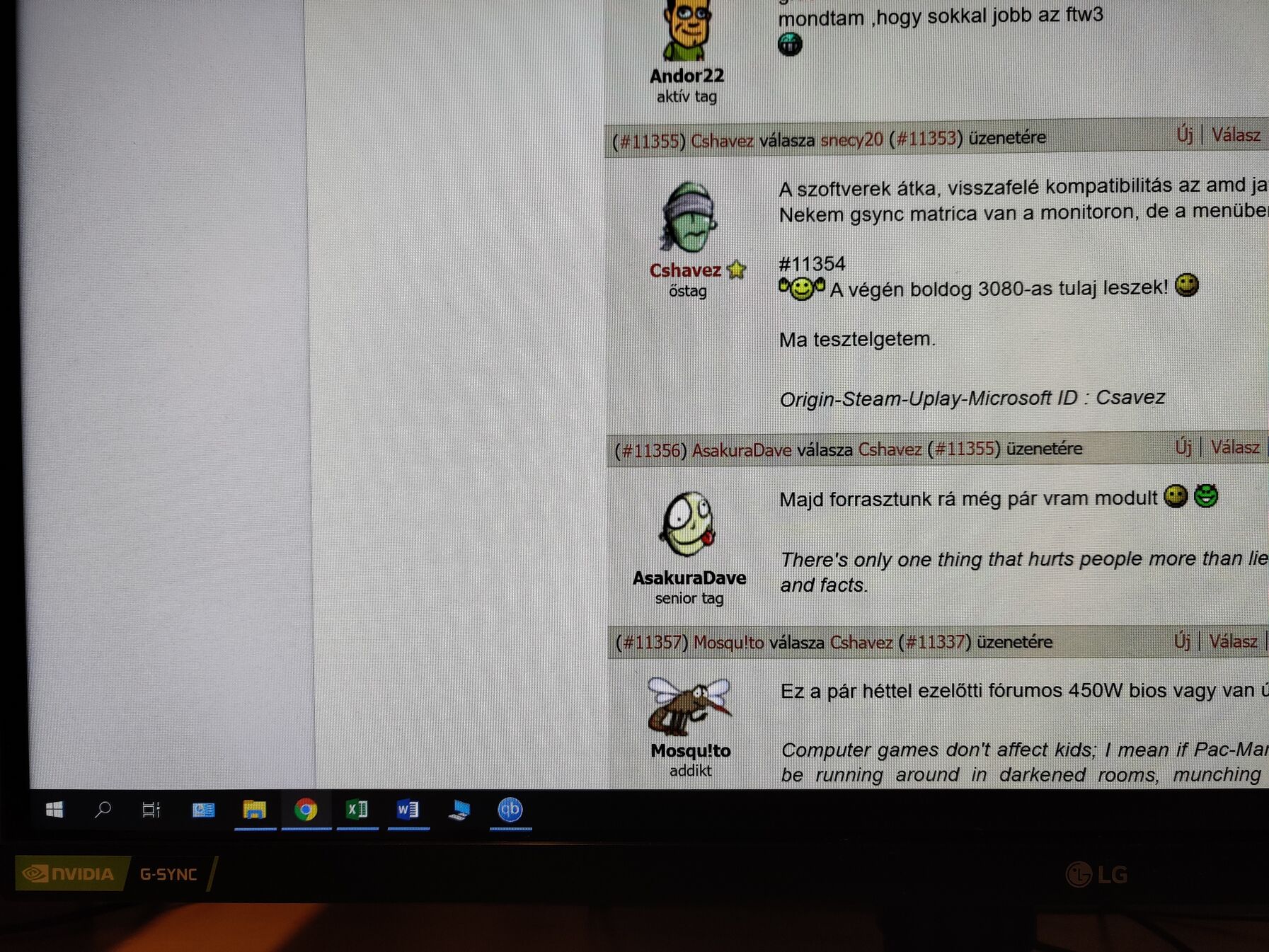 Számomra azok hiteles infók ha leírja az ember milyen játék/ teszt alatt, milyen beállítással milyen felbontáson és Hz-en, G-Snync / V-Sync mellett / nélkül.