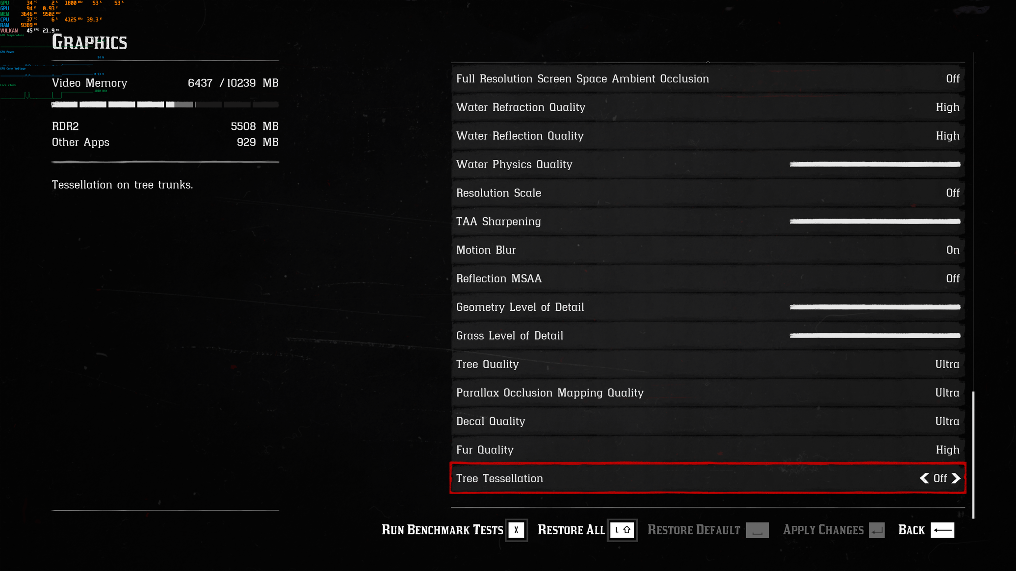 TUF NON OC alapon (100% power limit = 320W) RDR2 WQHD Ultra
