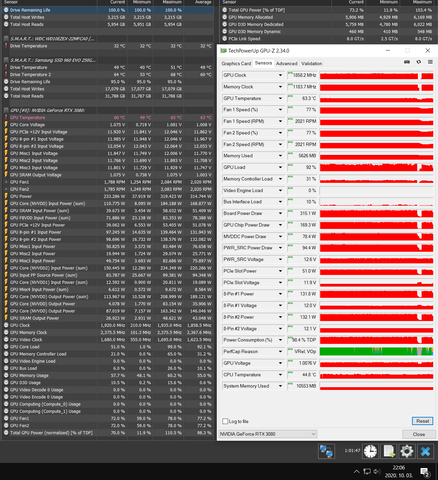 58 fok max...fogyasztás is gyönyörű, max 253W... Ha nincs valamelyik 1800 MHz-es átvezető akkor 2000 MHz fölötti az átlag is.Itt méginkább malmozik a 3080 sajnos. Új procival leszek majd kíváncsi.