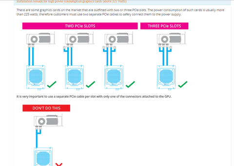 a leírásban az szerepel, hogy minden egyes slothoz külön kábelt használjunk, csak az egyik csatlakozot hasznalva a kabelrol.