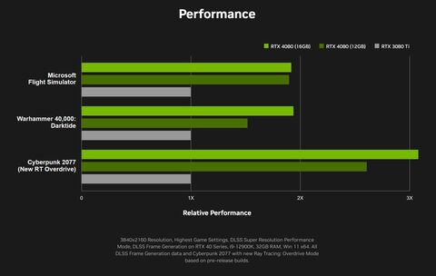 Meg látni kéne tesztben DLSS 3 és Ray Tracing nélkül hány százalék is a teljesítmény különbség. Az Nvidia azt mutatta amibe nagyot lép előre, de kétlem -