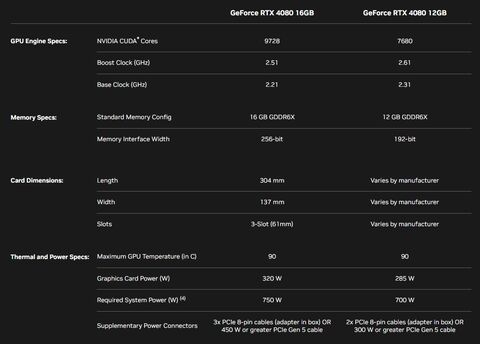 Maradt a 3090 Ti 450W-os TDP-je, méretben a 4080 FE és a 4090 FE hűtője megegyezik, jó eséllyel utóbbi sokkal több heatpipe-ot kap.