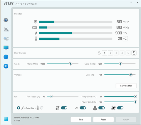 KRoy19 féle 0.995V @2835 úgy néz ki nálam is megy. 2805-ig dobja le max. +1200 van a ramon, eddig jónak tűnik. 3dmark alatt 460w volt a teteje.