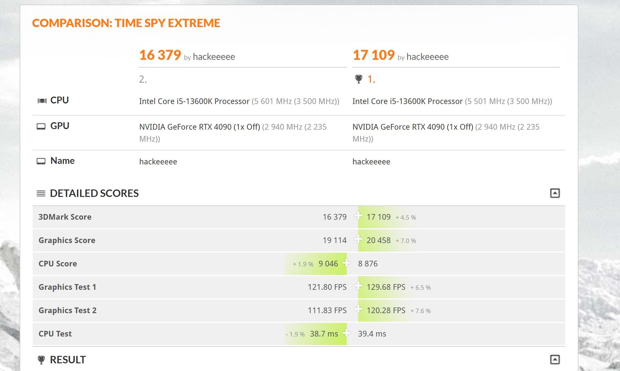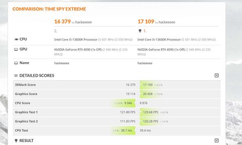Összehasonlítva a legjobb 4080-as eredménnyel.