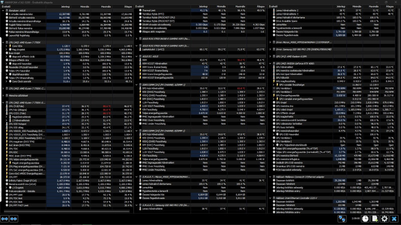 Egy CPU és memóriatesztes, majd másfél órás CP2077 játékeste után ilyen értékekkel én elégedett vagyok, kivéve, hogy a RAM-ok mellé kell rakjak egy kis ventit, mert a belső nem kap elég huzatot...