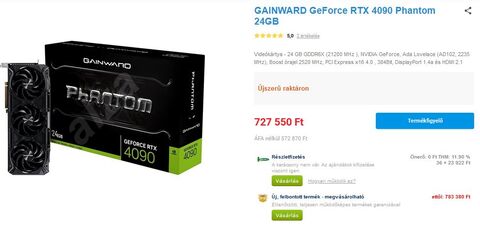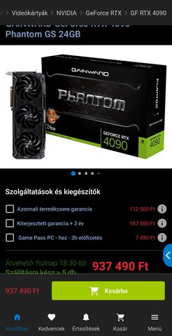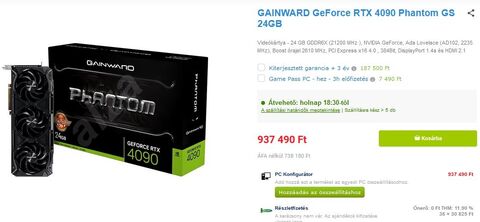 Ez drága, de bontatlan, most az alzán :https://www.alza.hu/gainward-geforce-rtx-4090-phantom-gs-24gb-d7438393.htm