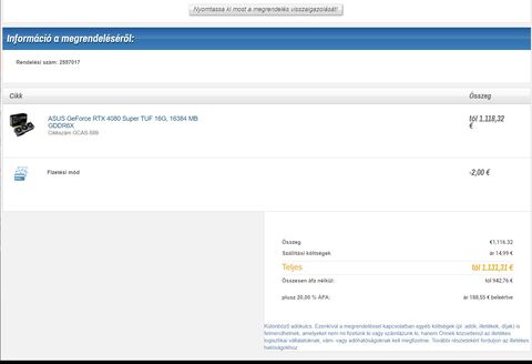 Szlovákiába olcsóbb. Pont most futottam bele egy 1700 euros 4090 -be Strix alzagaris. Aprón 2 van 800k ért hirdetik (mondjuk annyiért fogják is egy darabig). -