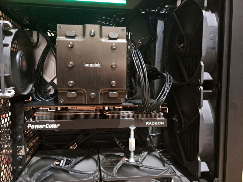 A V2 hűtés nagyon jó, már nem olyan mint a régi windforce. A 12vhpwr csati fura helyen van, de nem hátránya sőt, egész jó gondolat, nem törik meg a kábel. Alaplapra rögzülő tartó is van hozzá, stabil.
