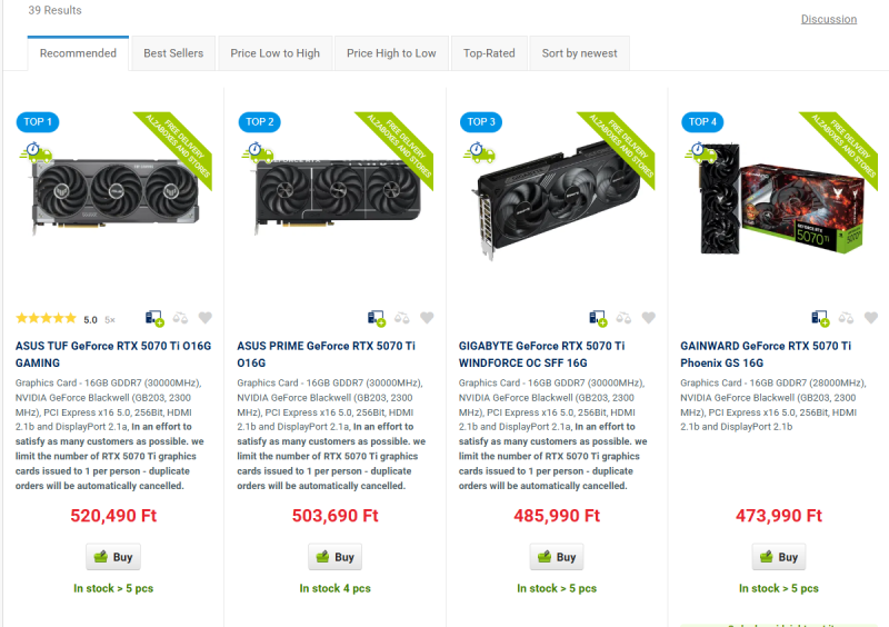Érződik ,hogy megérkezett a 9070XT, amitől enyhült a kereslet.Szóval az 5070 Ti visszatérhet föld körüli pályára.