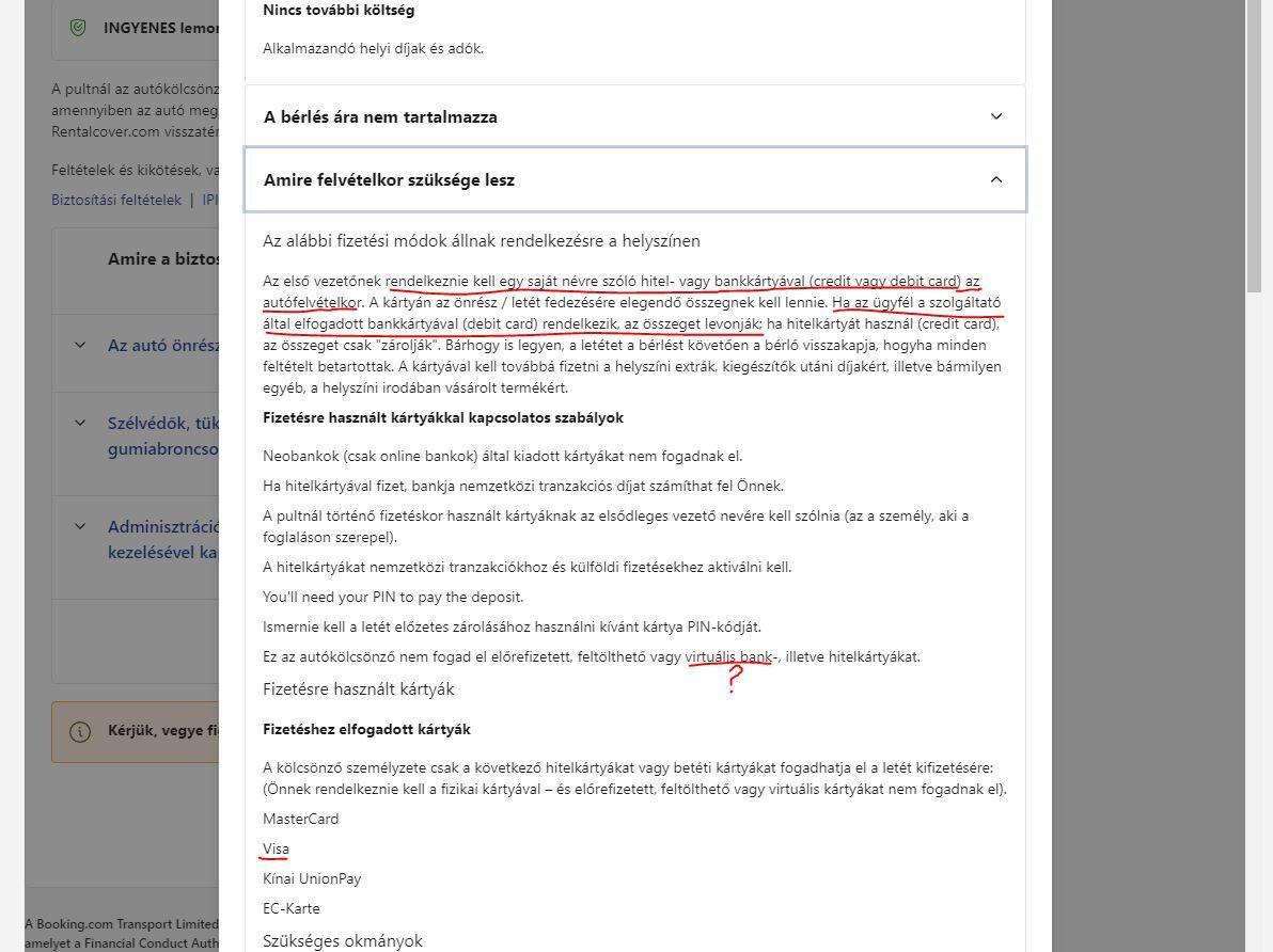 Egy, hogy olvasom, a kaukciót amit lefoglalnak még ugye nálunk az autó, azt az összeget csak hitelkártyával lehet kifizetni. Itt viszont olvasok egy ilyet:
